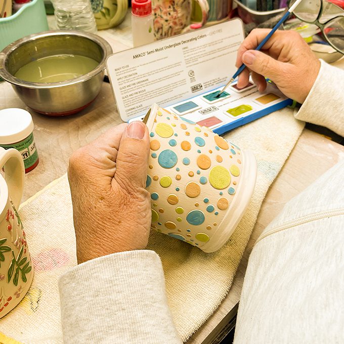 Our custom-made-to-order mugs are far more affordable than you think; prices vary from $25 to $50 depending on design and size. Visit our studio or set up a virtual session through our online store to review the process for ordering your custom Chester River Pottery mug.