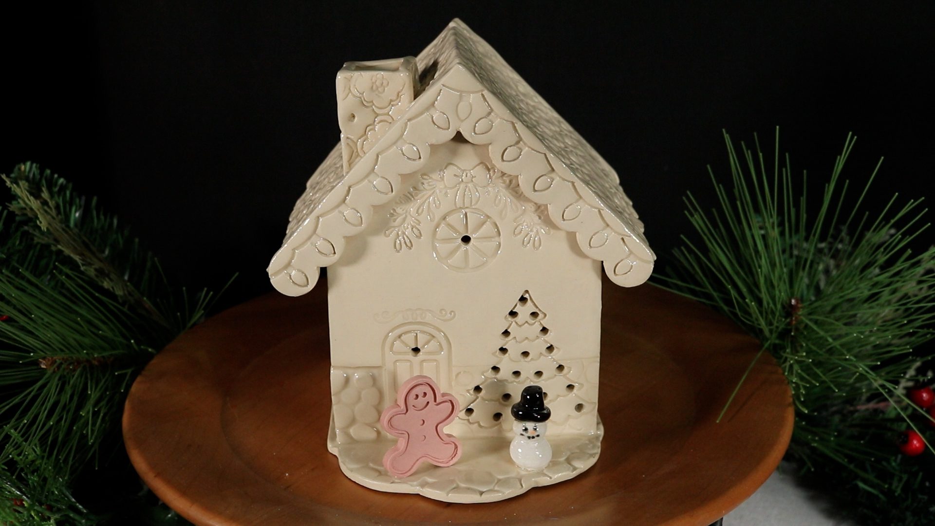 Holiday House White with Gingerbread Man and Snowman SKU 180010