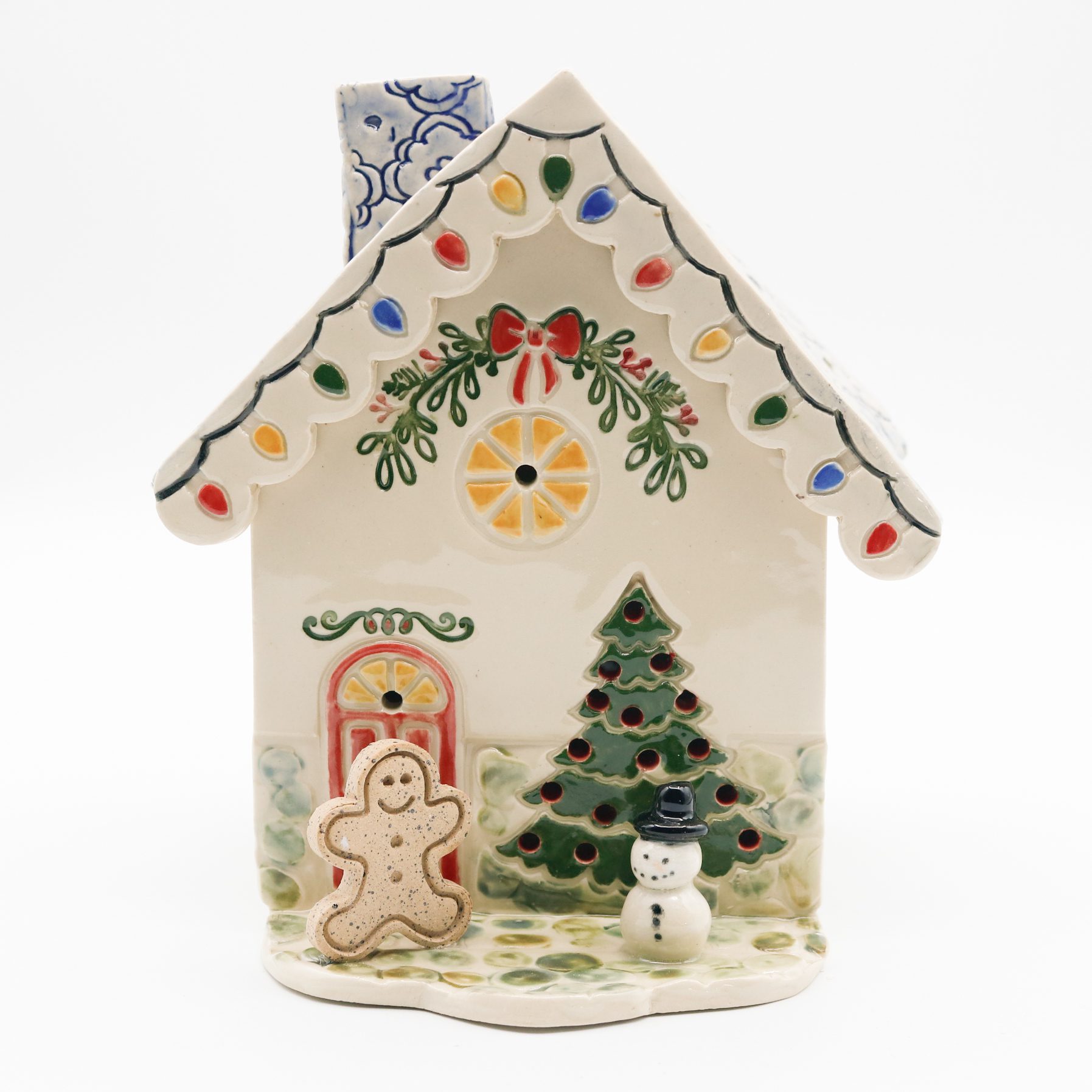 Holiday House with Snowman, Gingerbread Man and Garland SKU 180006