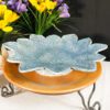 The intricate geometric pattern impressed into the clay and accented with a soft blue glaze gives this bowl a delicate yet bold presence. Its unique scalloped edges enhance its organic form, making it a perfect statement piece for your table or display. Whether used for serving, as a centerpiece, or as a decorative accent, this handmade bowl brings beauty and craftsmanship into your space.
